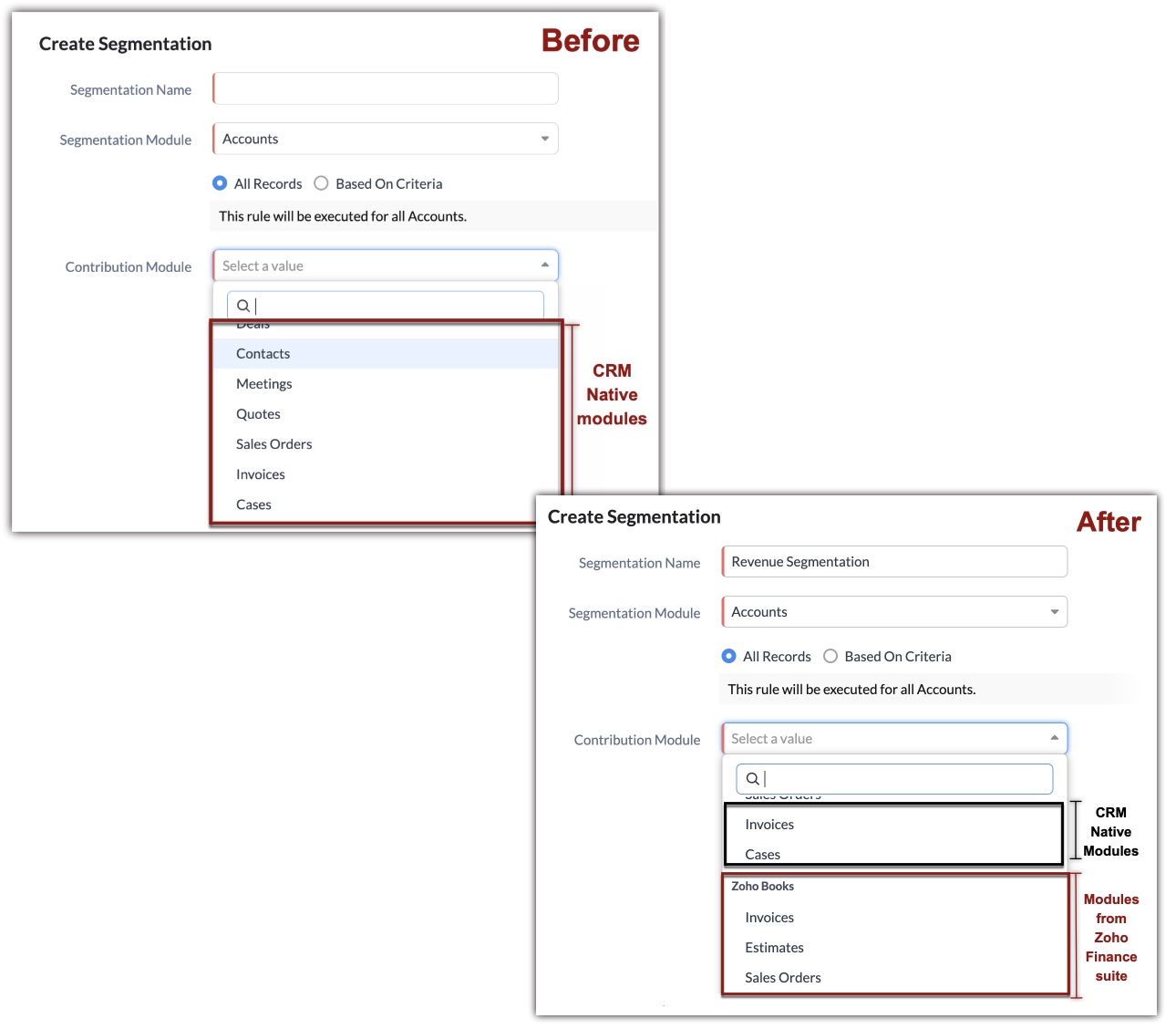 【Zoho CRM】セグメンテーション機能に関するアップデートのお知らせ:Zoho Financeタブ内データも集計対象として設定できるようになりました。