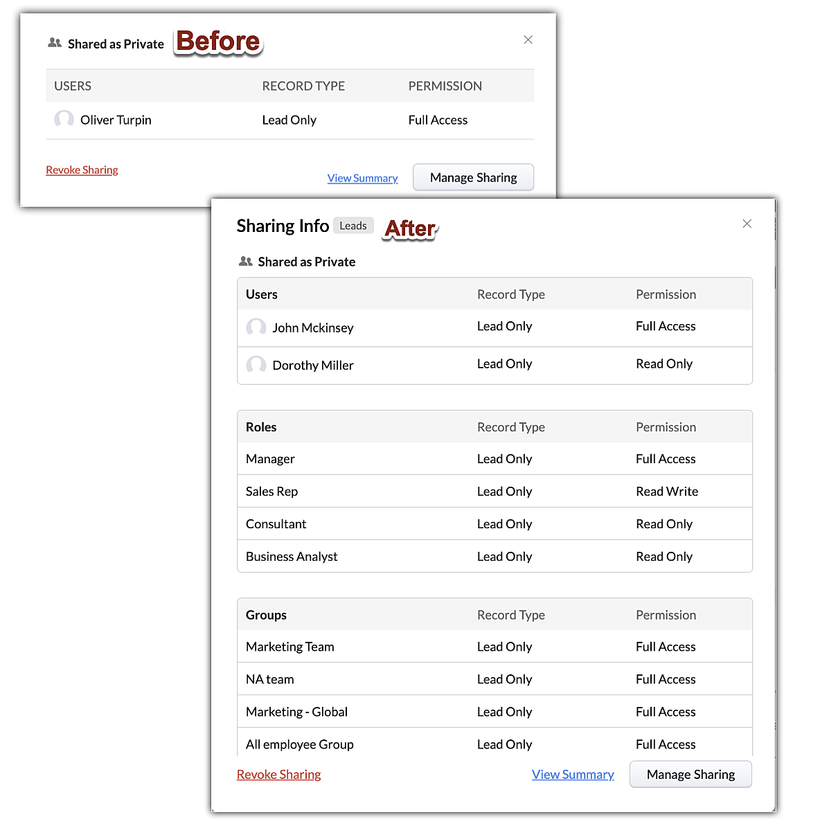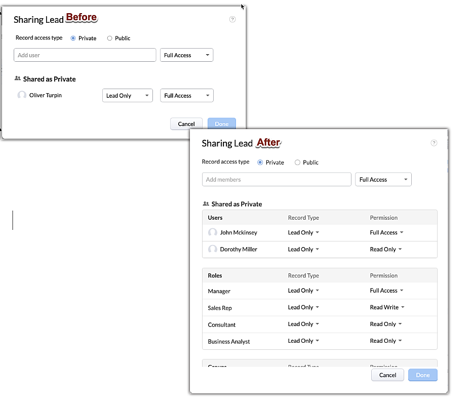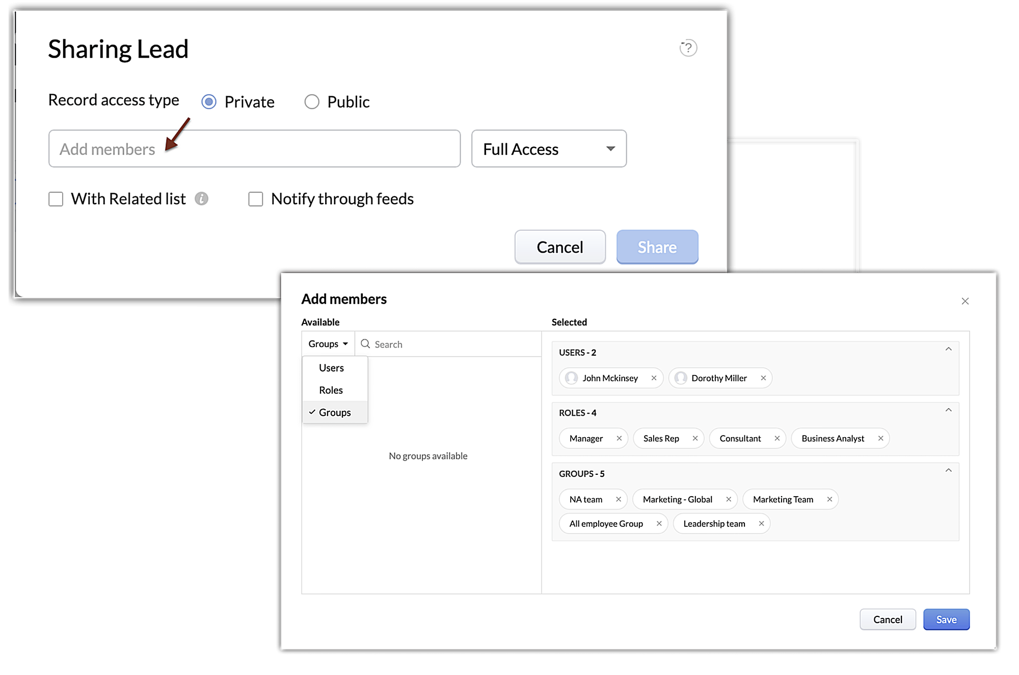 【Zoho CRM】データの共有機能に関するアップデートのお知らせ:役職・グループ単位で個々のデータを共有できるようになりました。