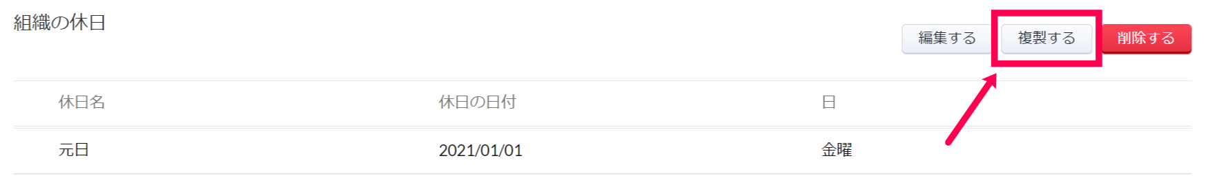 休日リストの複製