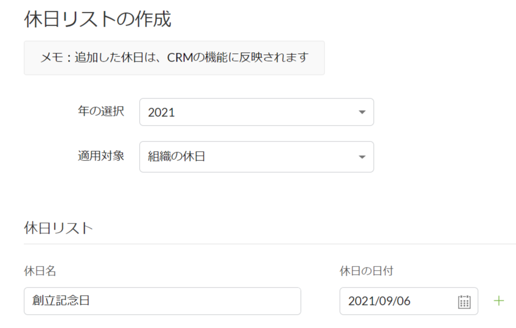 例えば、組織の休日として会社の創立記念日を追加した場合、各シフトに関係なく、組織内で働くすべてのユーザーに適用されます。