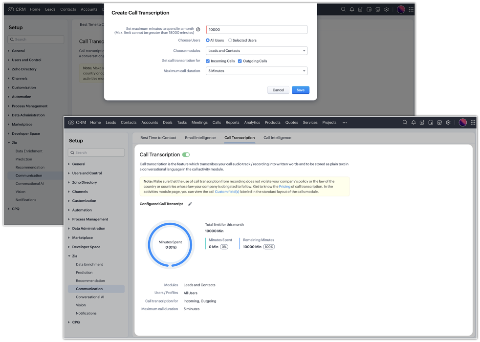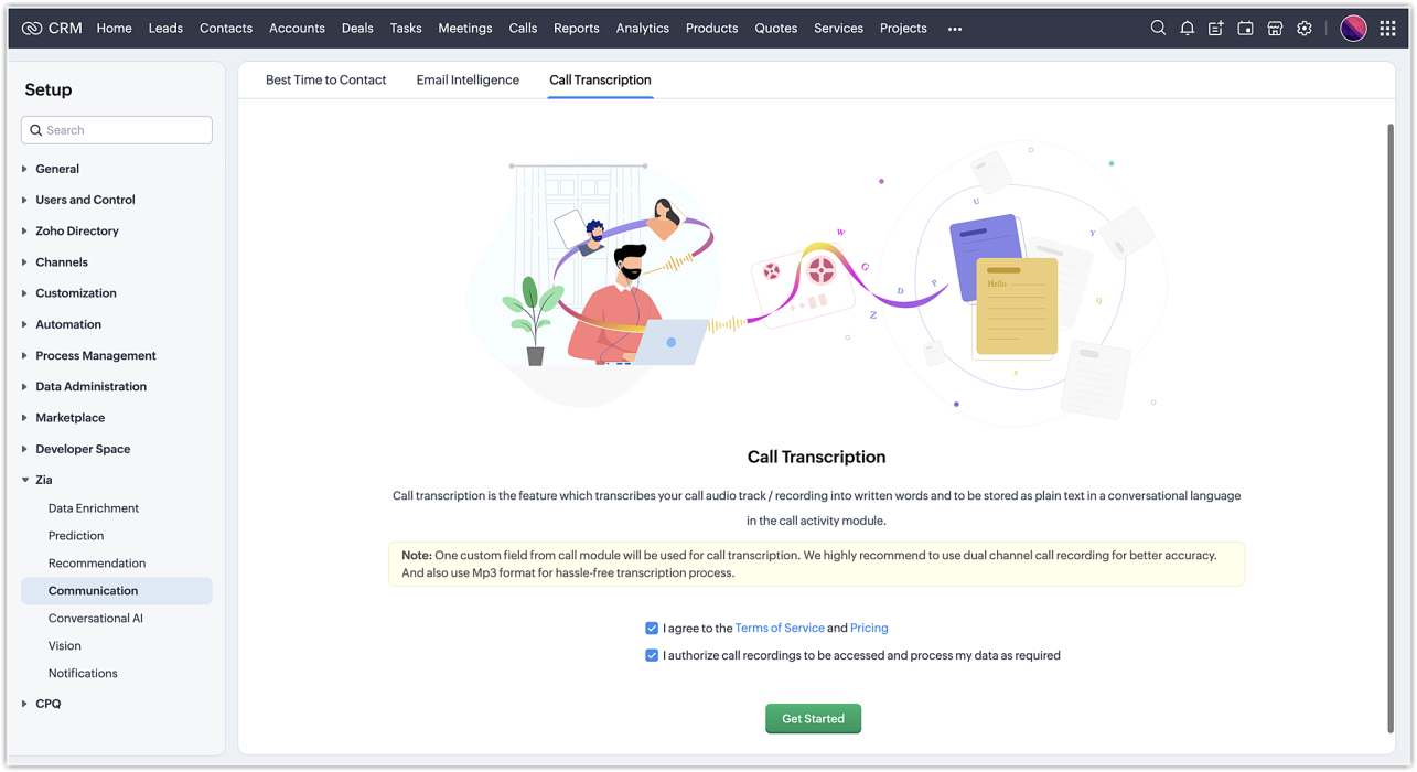 【Zoho CRM】Zia機能に関するアップデートのお知らせ:「通話データのテキスト変換」と「通話の分析」機能がリリースされました。