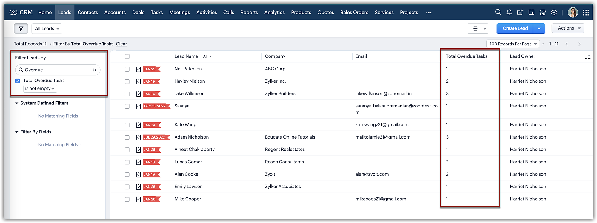 しかし、何らかの要因により、担当者が期限内にタスクを完了できなかった場合、そのタスクは「未完了の活動」に残ったままになるので、タスクに完了期限がまだ残っているような印象を与えることになります。営業マネージャーとして、そのような期限切れのタスクを把握しておきたいと思うかもしれません。