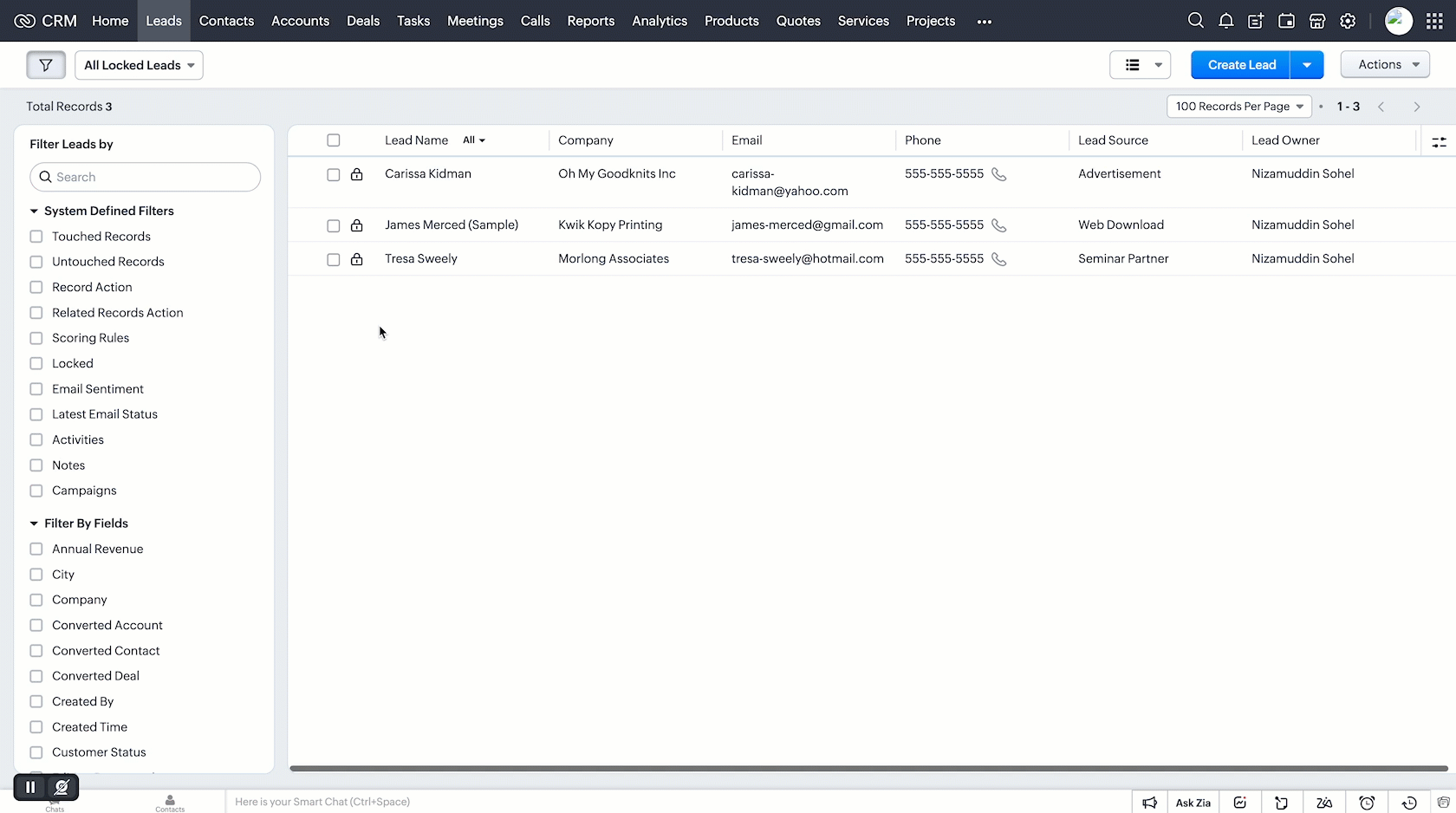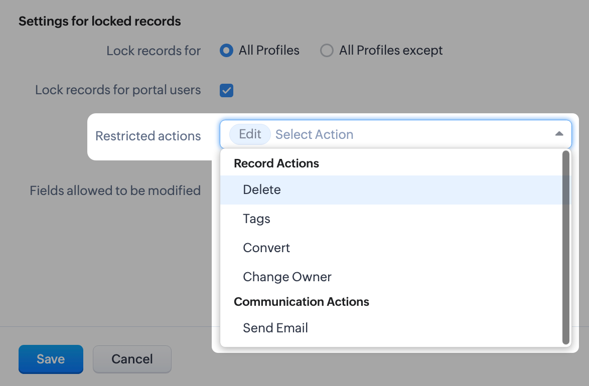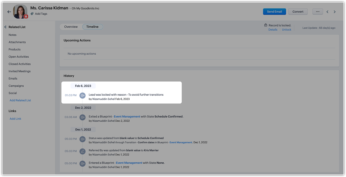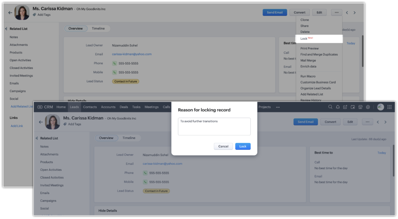 Zoho CRMのデータのロック機能では、手動または特定の条件を満たした場合に自動的にデータをロックすることができます。