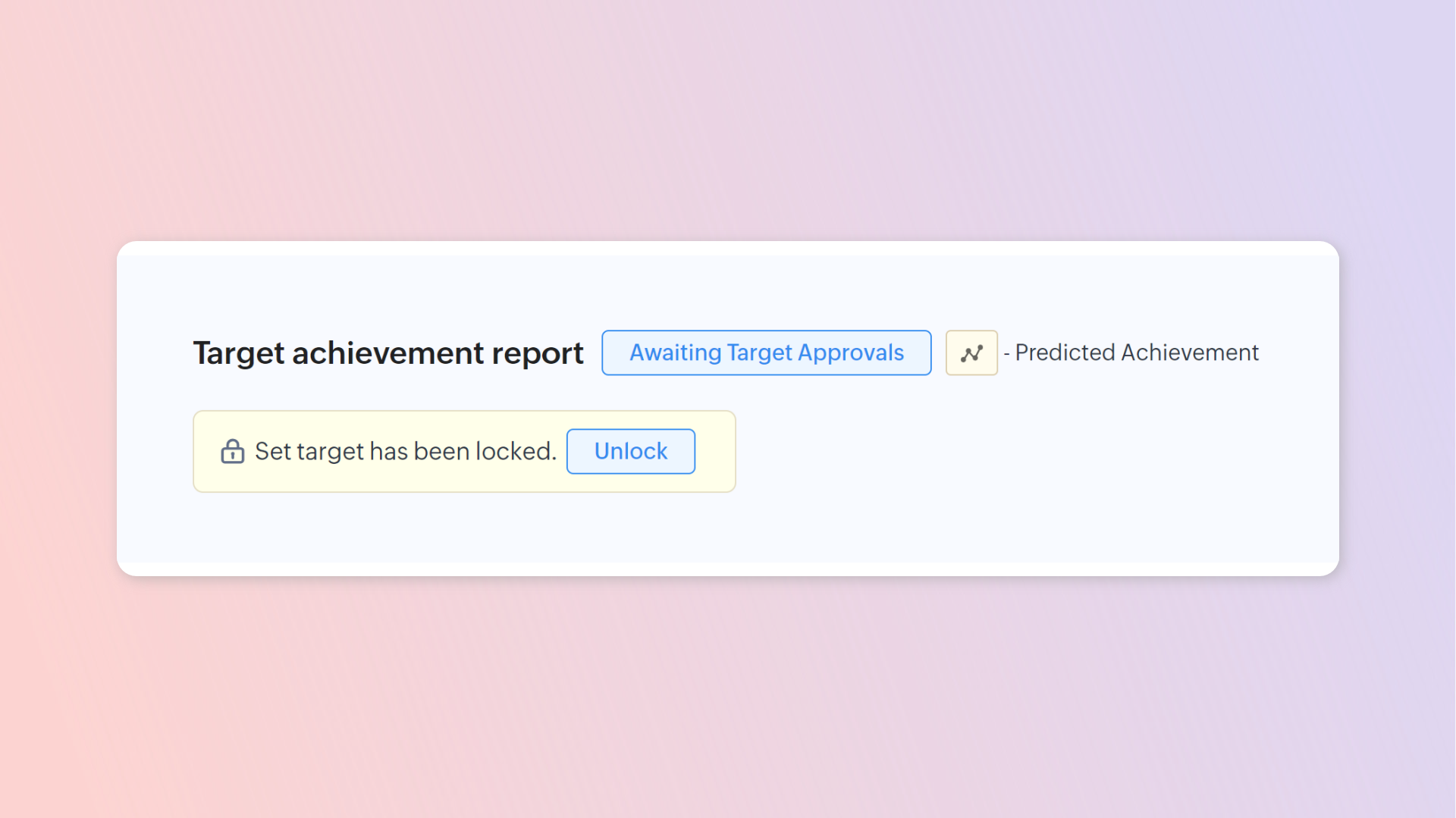 適切な期間が経過した後、更なる変更を避けるため、管理者は設定された目標をロックしたいと思うかもしれません。その場合、管理者は売上予測に対して目標の送信をロックすることができます。一度ロックされると、管理者以外は目標の送信、承認、却下ができなくなります。また、管理者は必要に応じて、目標の送信のロックを解除することもできます。