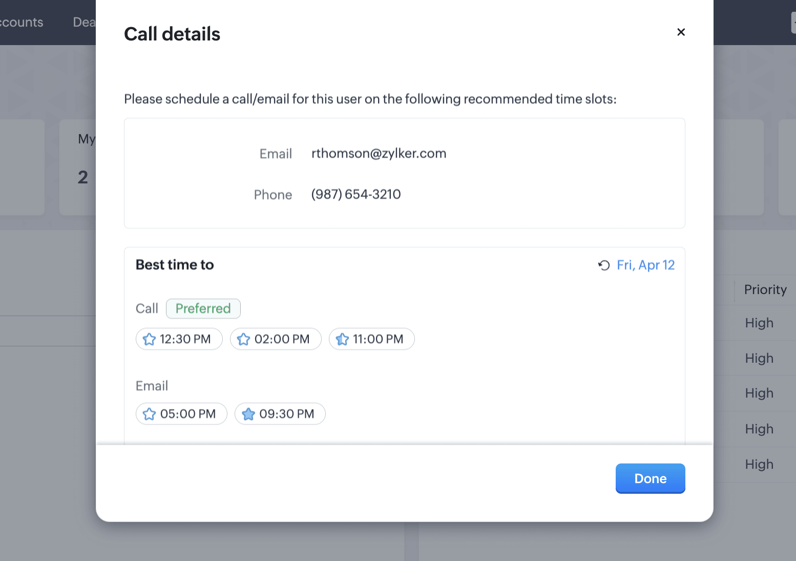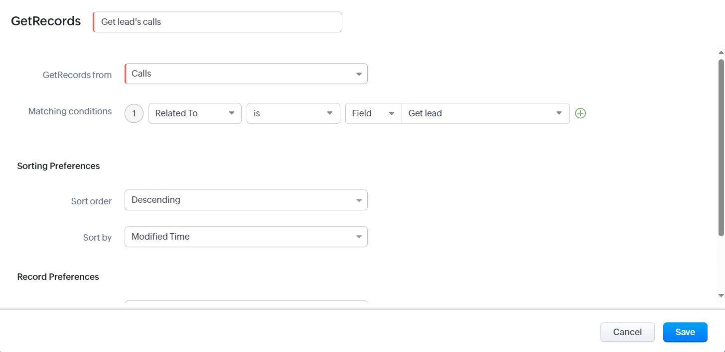 たとえば、見込み客に関連付いているすべての通話データを取得したいとします。