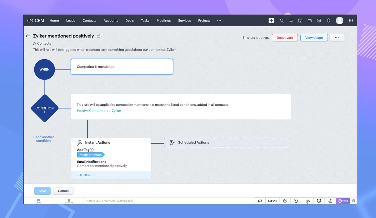 【Zoho CRM】ワークフロールール機能に関するアップデートのお知らせ:競合他社への言及トリガーが追加されました。