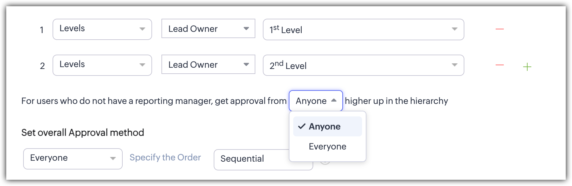 - 特定のウェブサイトから新しい見込み客を追加する場合などは、誰か1名の承認があれば十分なので、[いずれかの承認者]を選択し、素早く次のステップに進めるようにする。