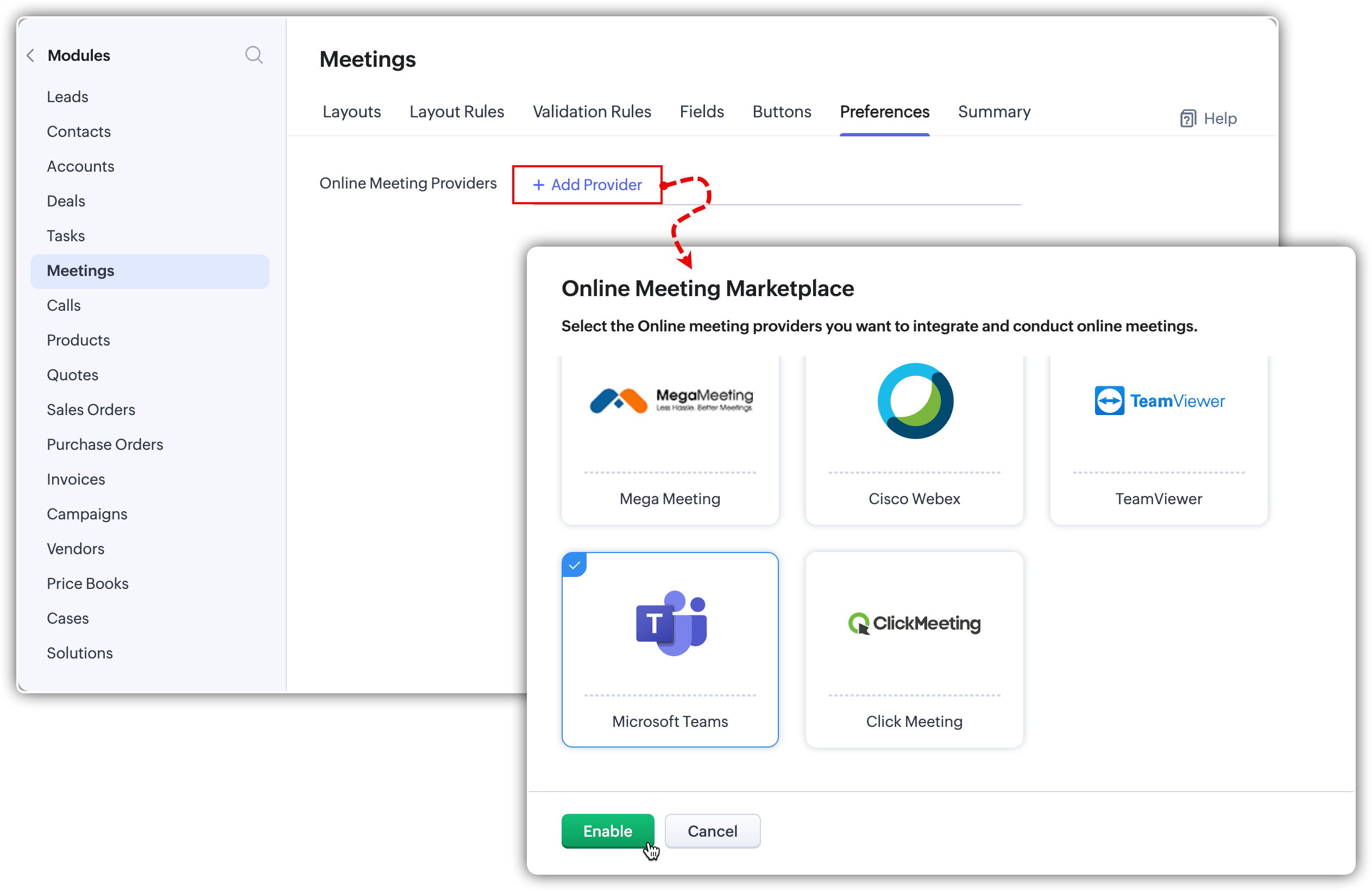 Zoho CRMでは、既存のミーティングサービスだけでなく、Microsoft Teamsも利用できるようになりました。