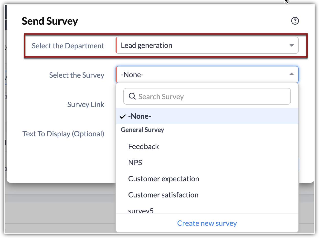 【Zoho CRM】Zoho Survey連携に関するアップデートのお知らせ:アンケートの送信/回答時に、部門ごとにアンケートが表示されるようになりました。