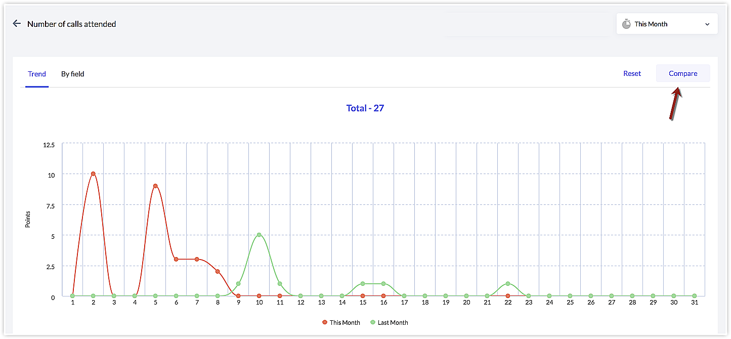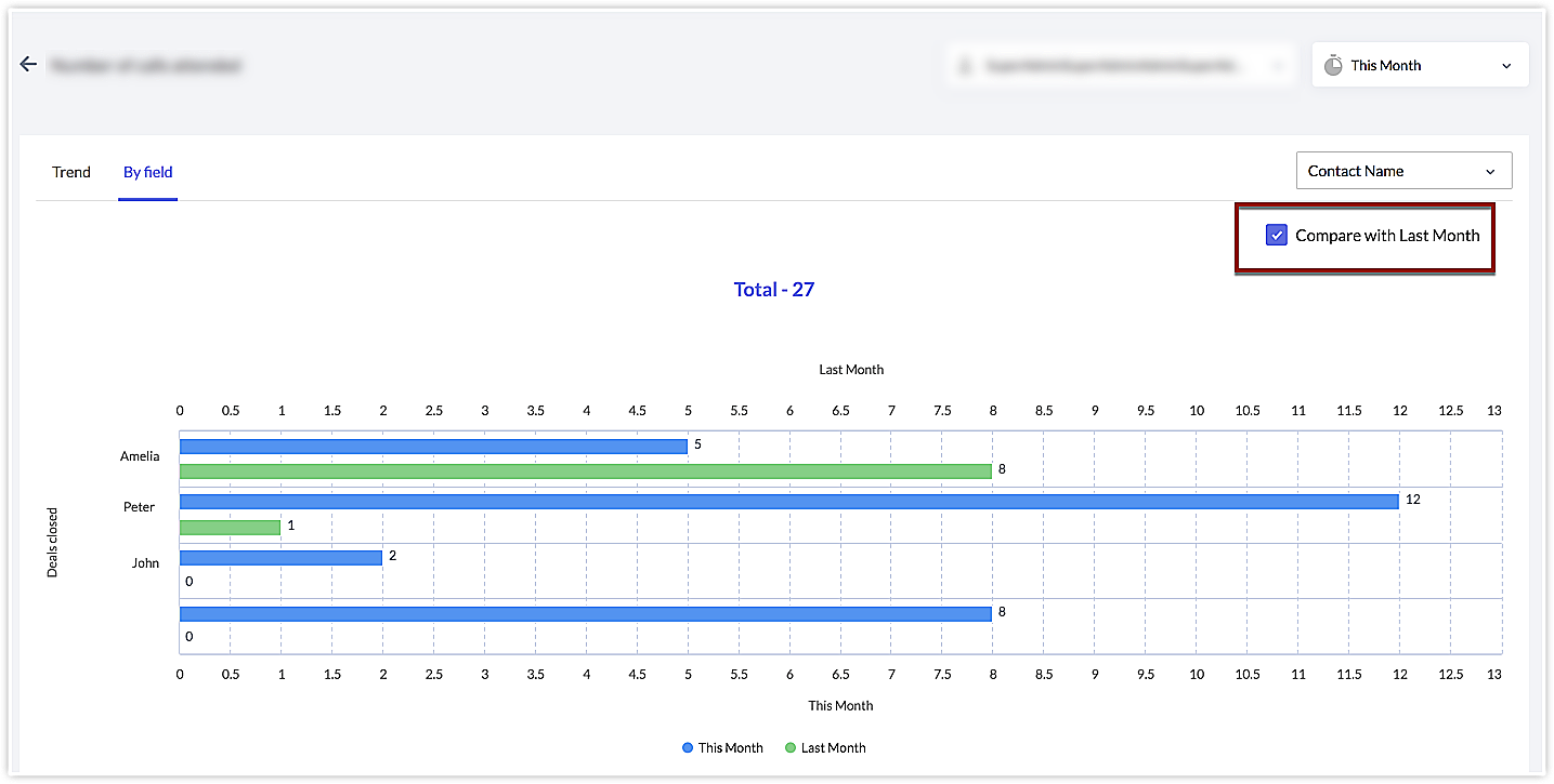 また、特定の項目について、今月と前月の実績を比較することもできます。