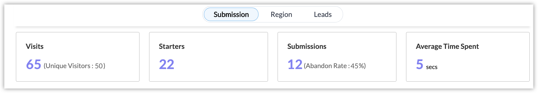 送信タブでは、訪問者数、訪問者数(重複を除く)、送信数、離脱率、訪問者が特定のフォームに費やした平均時間をまとめたKPIを導入しています。