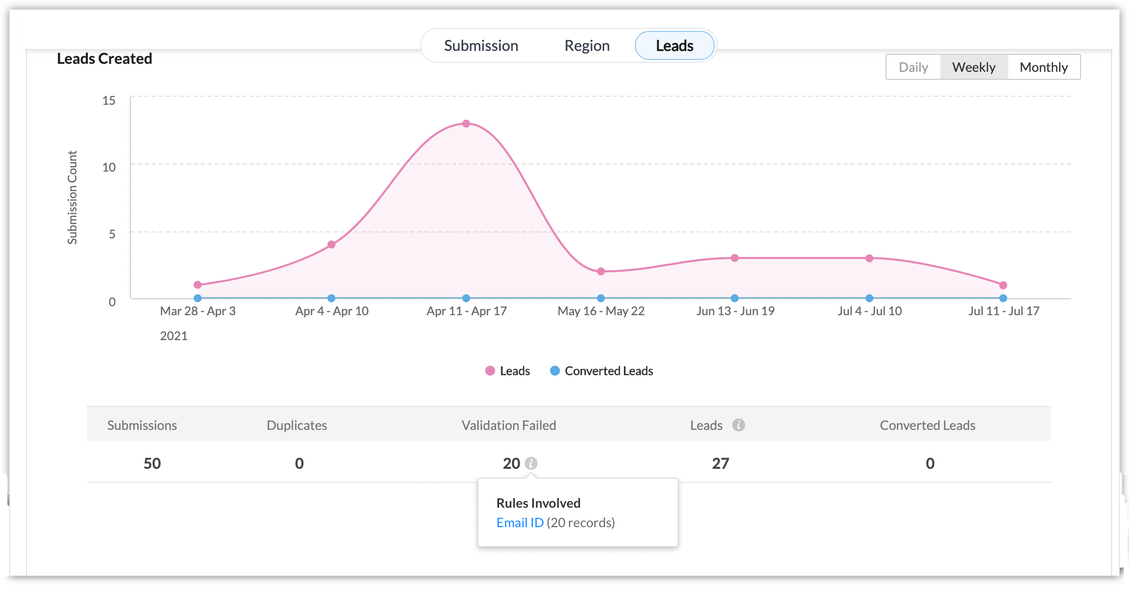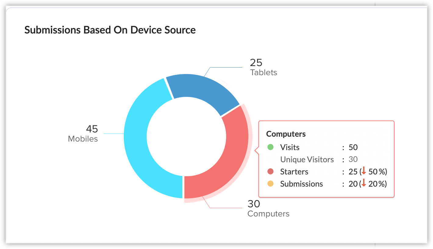 フォーム別の分析には、タブ別の分析が含まれています(例:見込み客タブの送信数)。