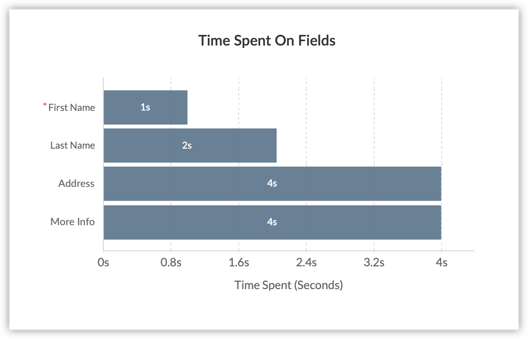 この分析により、訪問者が入力に手間のかかるポイントを理解し、項目の種類を選択リストやルックアップへ変更すること等により、訪問者がフォームの入力に多くの時間を費やさないように対処できます。