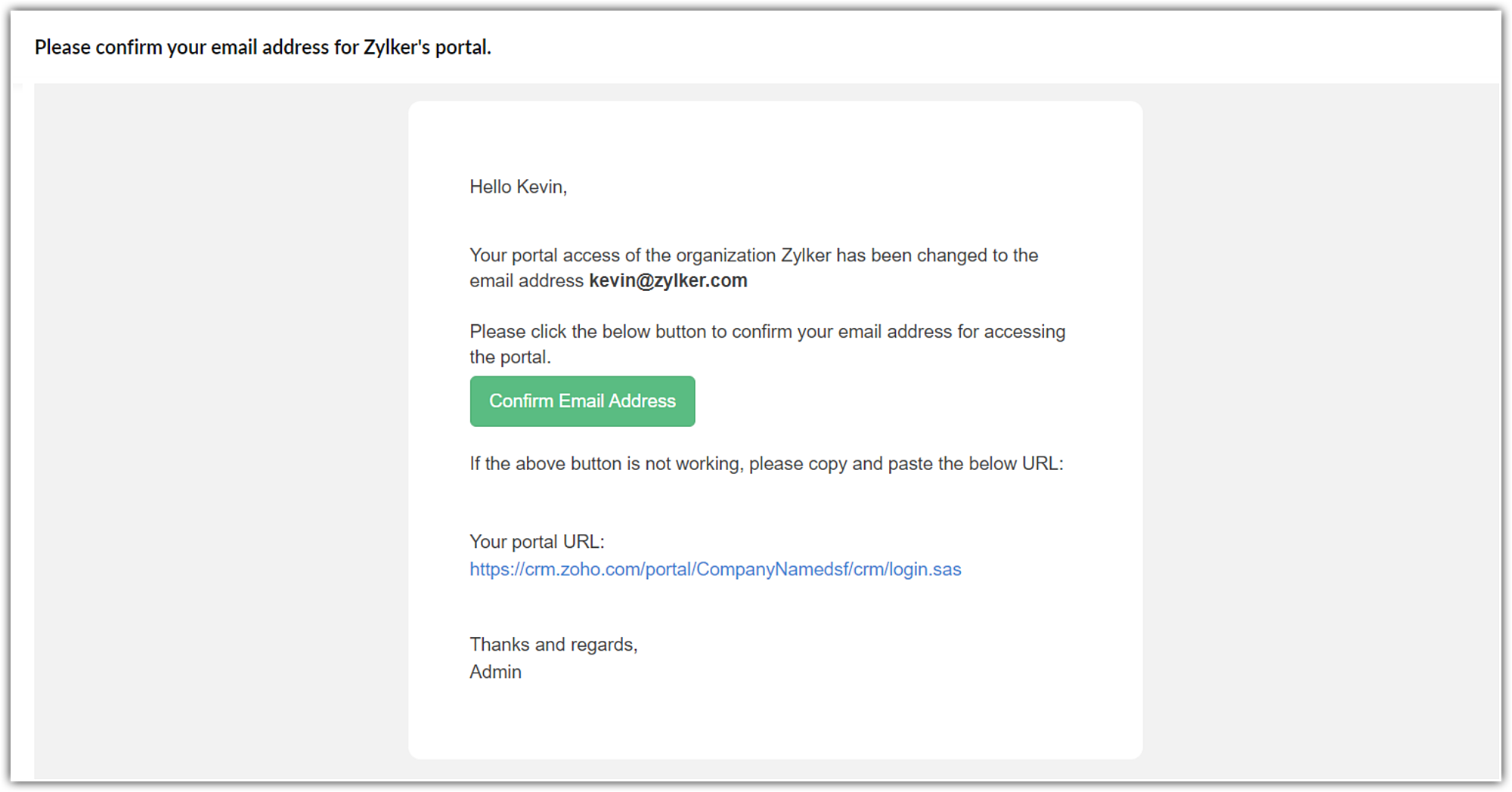 ポータルが作成されると、サインアップしてCRMのポータルにアクセスするためのリンクが記載された招待メールがポータルユーザーに送信されます。