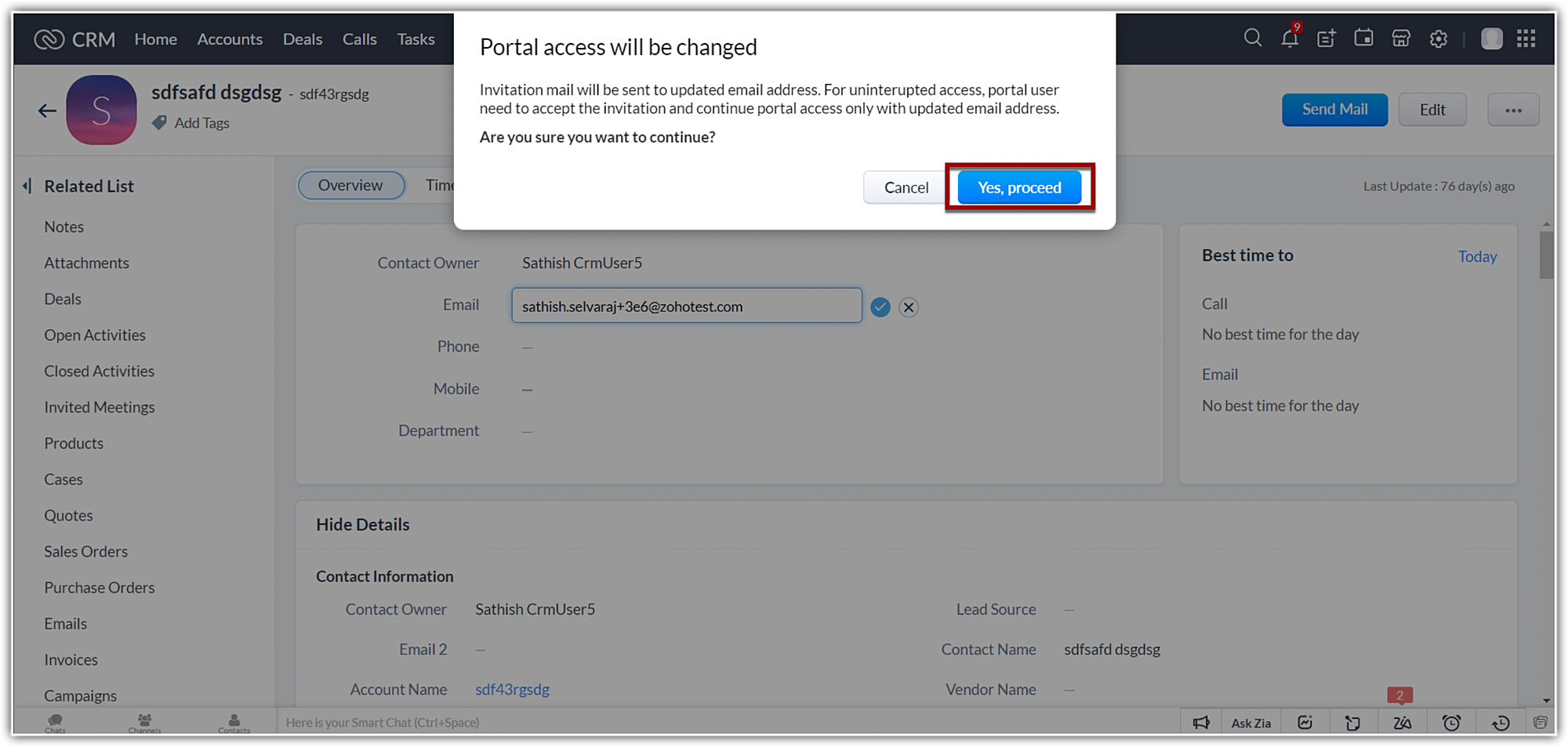 無効化されたポータルユーザーのメールアドレスを変更すると、ポータルユーザが有効化された際に、メールアドレスを認証するためのメールが送信されます。認証完了後、既存のポータルアカウントに引き続きアクセスすることができます。