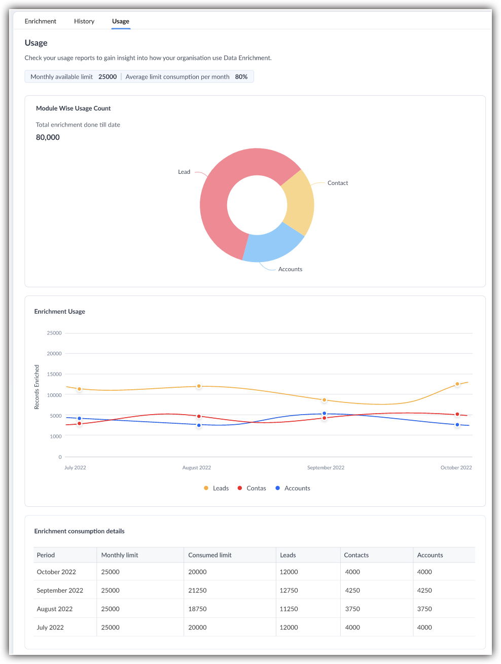 このような理由から、「データエンリッチメントの履歴」と「データエンリッチメントの使用状況」機能を追加しました。