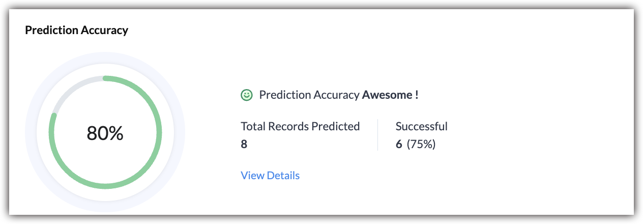 Ziaの魅力的な機能のひとつとして、予測機能があります。変換率や見込み客による購入の可能性などの設定に基づいて、ビジネスのさまざまな側面を予測することができます。Ziaの予測機能では、すべての適格なデータに対し、その予測結果を表示することで、正しい期待値を設定することに役立ちます。