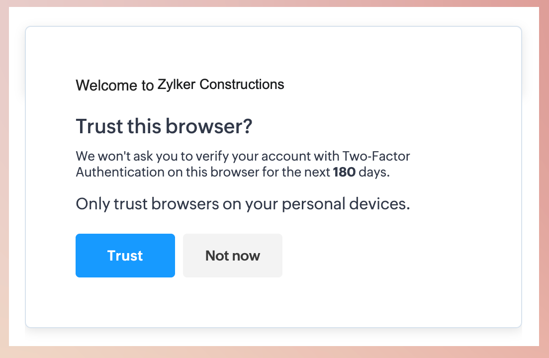 - すべてのポータルユーザーに対してMFAが義務付けられた後、ユーザーが初めてログインする際、認証アプリからTOTP(時間ベースのワンタイムパスワード)を入力すると、このブラウザを信頼するかどうかを選択する画面が表示されます。