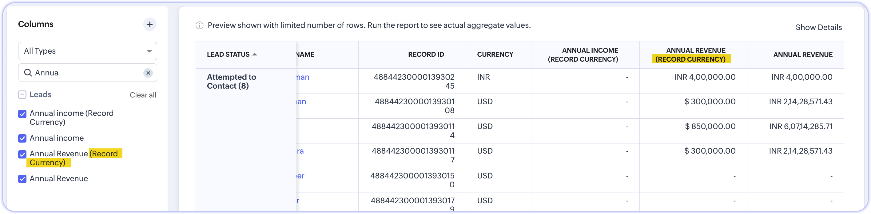 このアップデートにより、レコードの通貨を列に追加し、表示できるようになりました。
