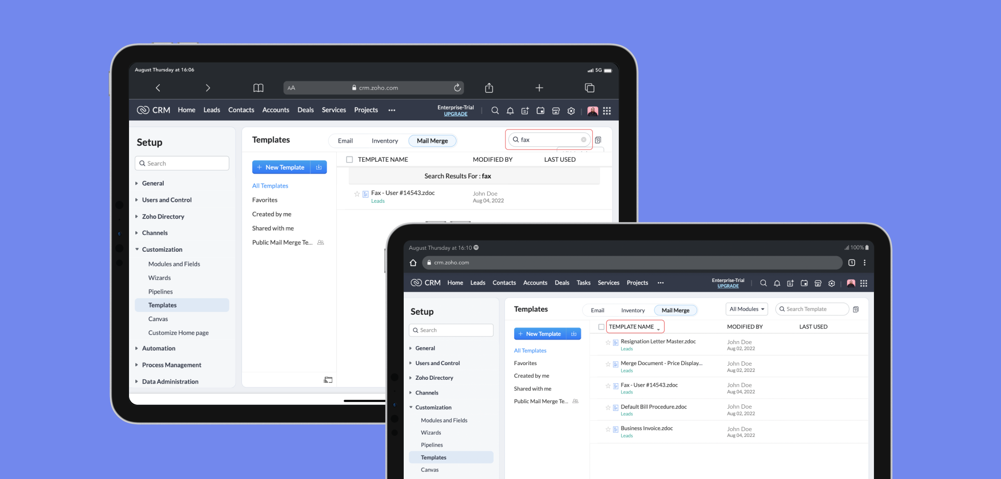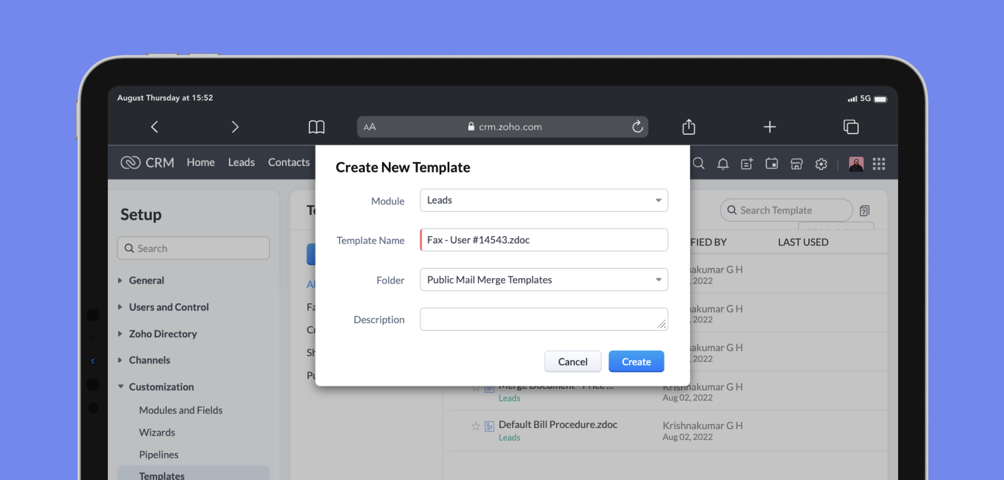 これにより、モバイル端末のウェブブラウザからでも、Zoho CRMの差し込み文書テンプレートに関するすべての操作を行うことができるようになりました。