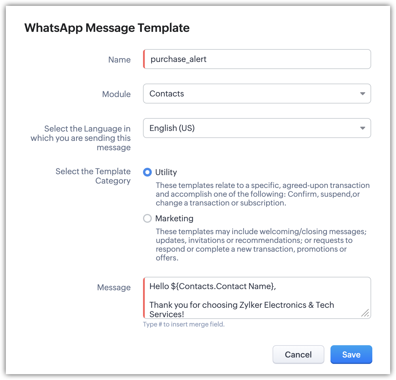 WhatsApp BusinessとZoho CRMの連携がアップデートされ、 パーソナライズされたテンプレートを作成し、自動のWhatsAppメッセージとして使用できるようになりました。このアップデートにより、顧客とのコミュニケーションを効率化し、顧客エンゲージメントを向上させることができます。