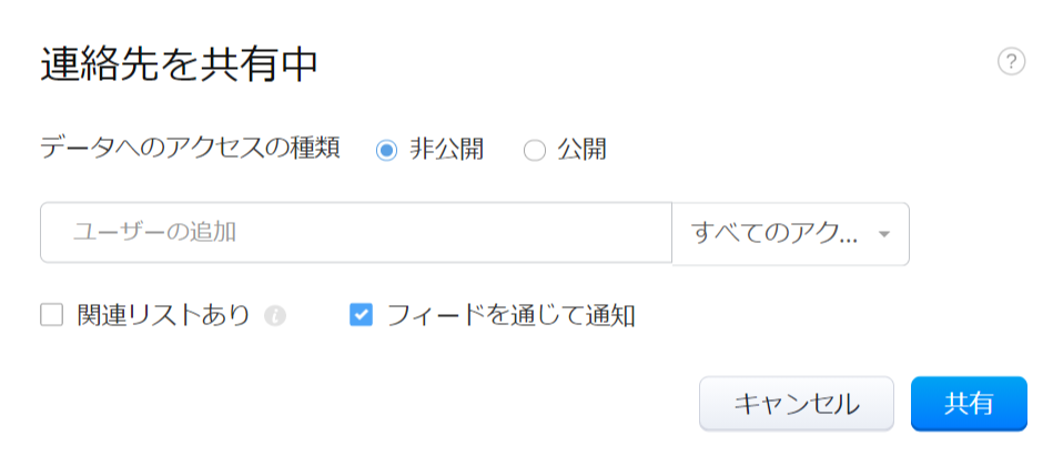 データを特定の組織内ユーザーにだけ共有する「非公開」アクセスとして共有する際、フィードを通じて該当のユーザーに通知できます。