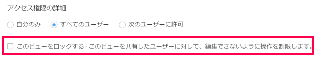 ビューをロックするには、カスタムビューの編集画面で、