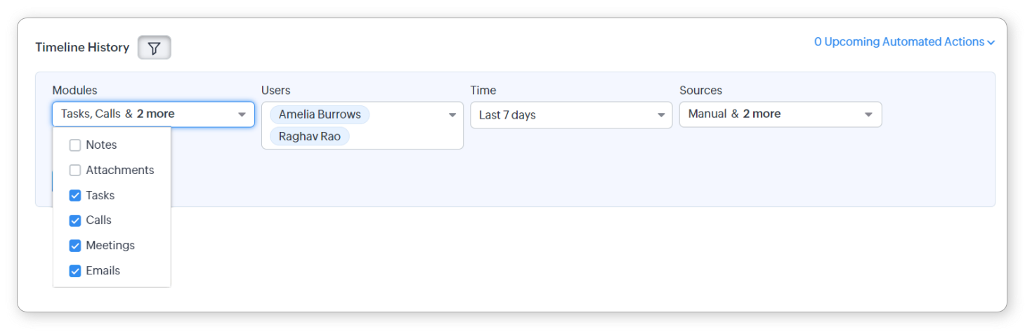 - 営業マネージャーは、見込み客や連絡先に関して営業担当者が行った一連の作業のみを確認したいかもしれませんが、項目の値に関する変更履歴を延々とスクロールしなければならないかもしれません。