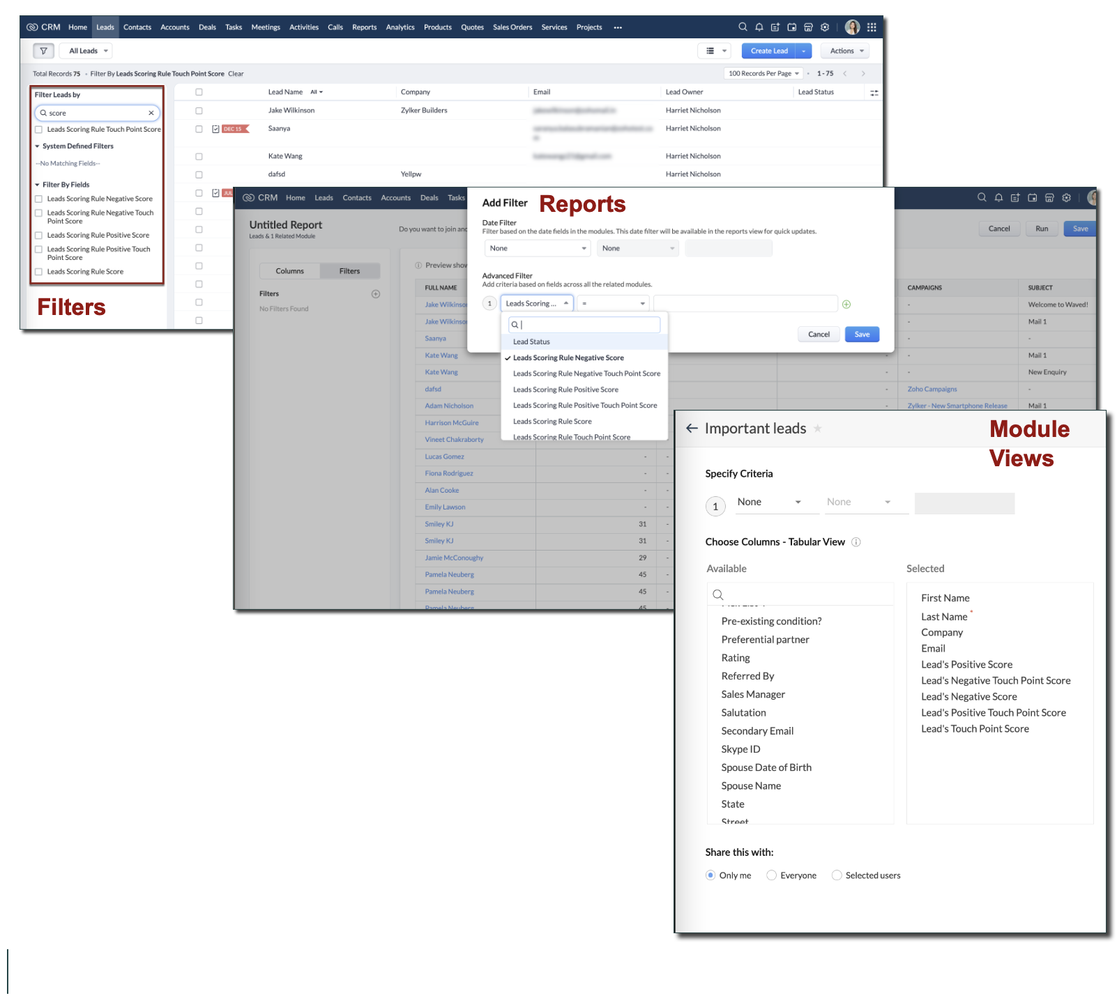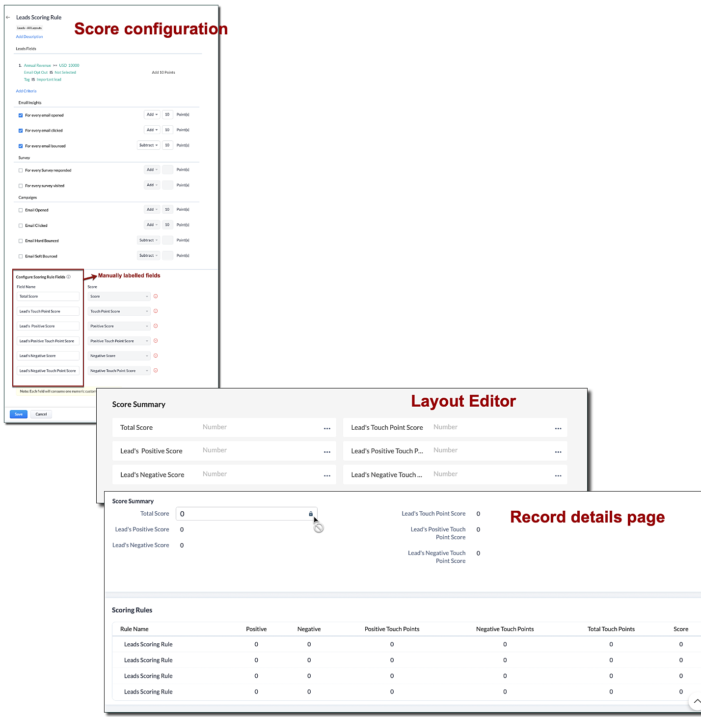昨年複数のスコアリングルール機能が導入されて以来、見込み客、取引先、連絡先、商談、カスタムタブで、複数のレイアウトのデータを一度にスコアリングできるようになりました。これにより、見込み客/顧客の行動や、インタラクションなどの特徴に基づいて、データをランク付けすることができます。