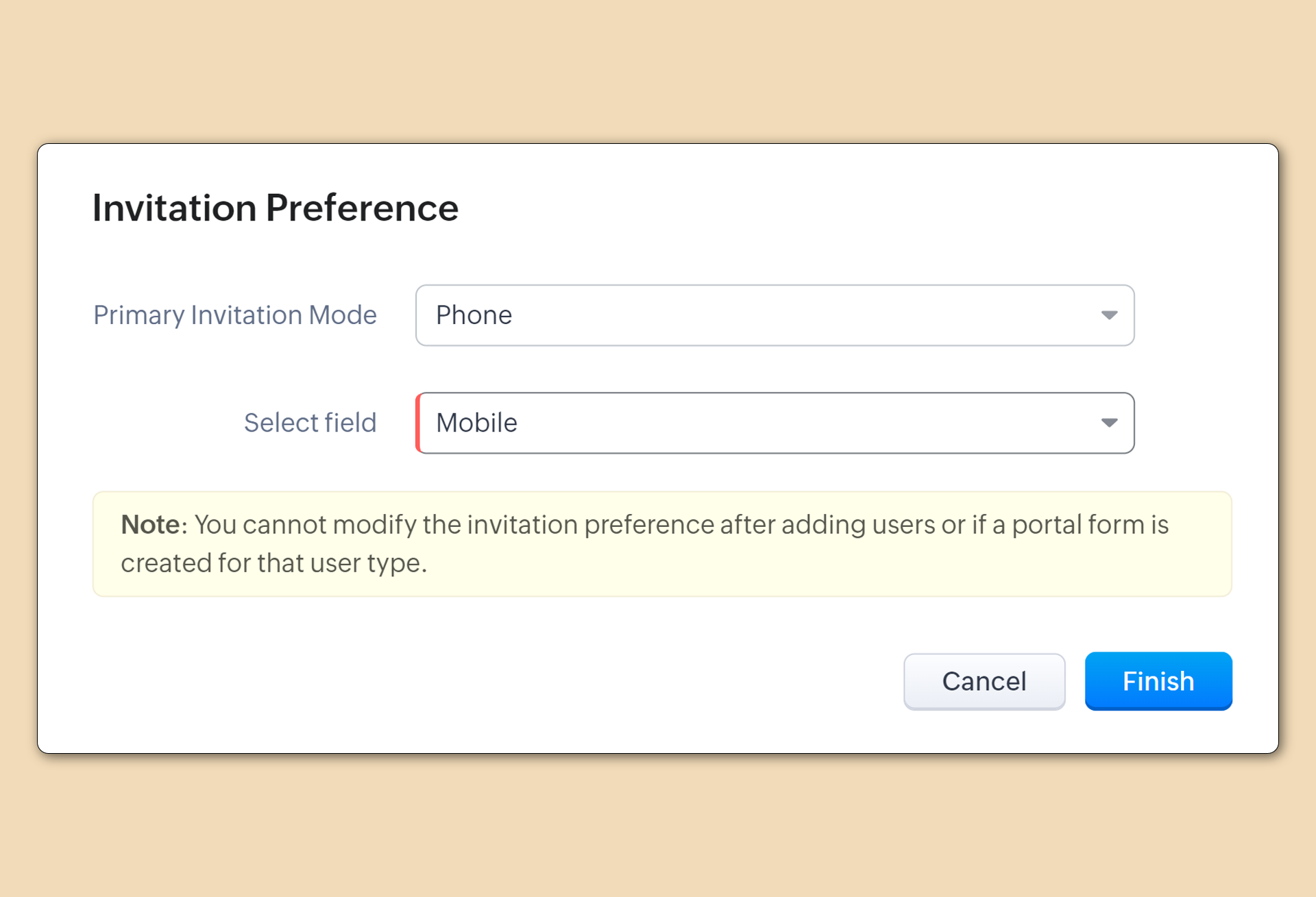 各ポータルユーザータイプにおいて、主要な招待方法をEメールまたは電話のいずれかに設定できます。以前はEメールのみでした。この設定は、ポータルユーザータイプにユーザーまたはポータルフォームがない状態のときにのみ変更できます。