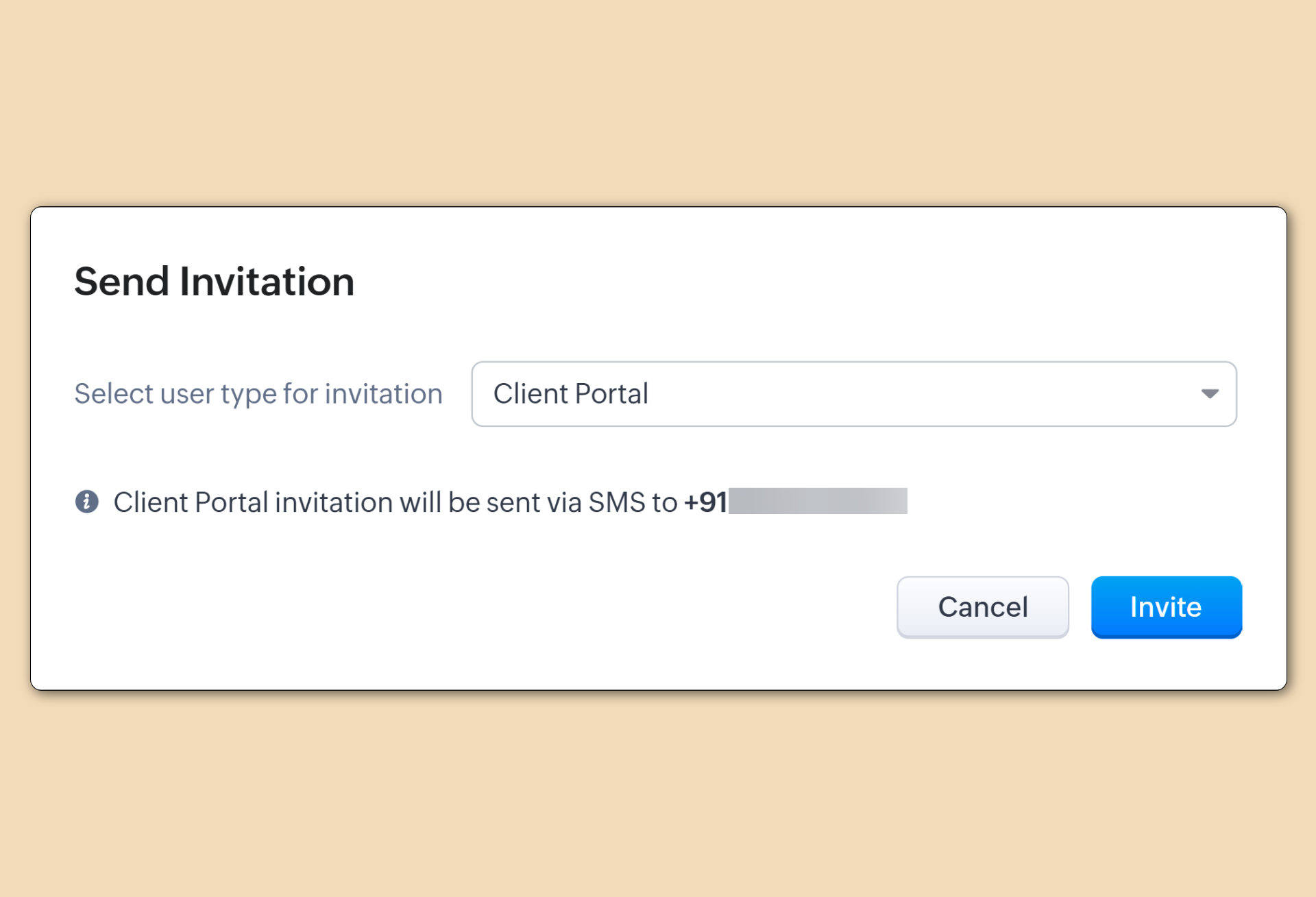 このアップデートは、現在インド国内に登記されている企業向けにサポートされています。登録された送信者IDからポータル関連のSMSをインドの顧客に送信できます。ユーザーに招待を送信するには、ユーザーの携帯電話番号が+91で始まる必要があります。