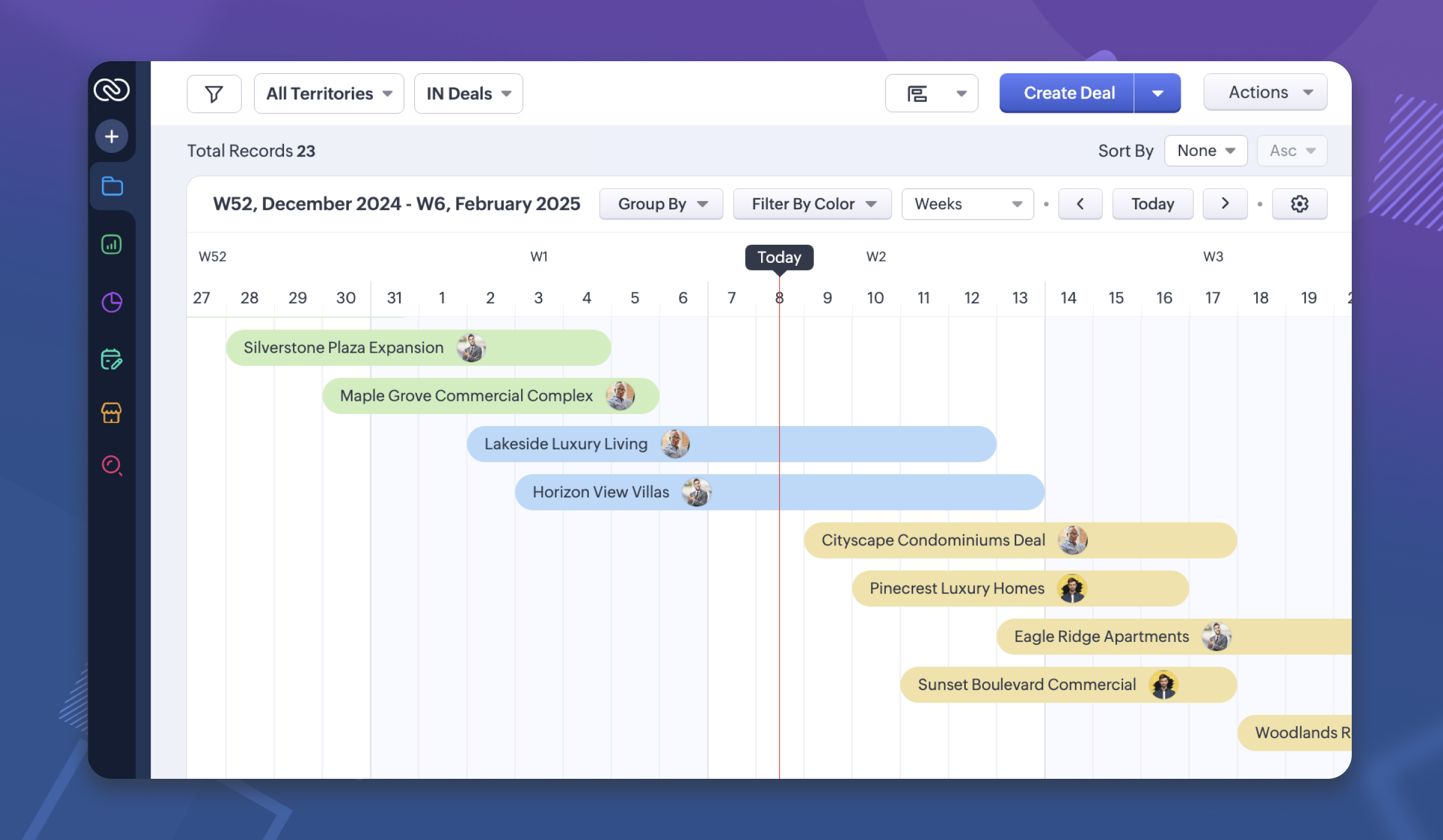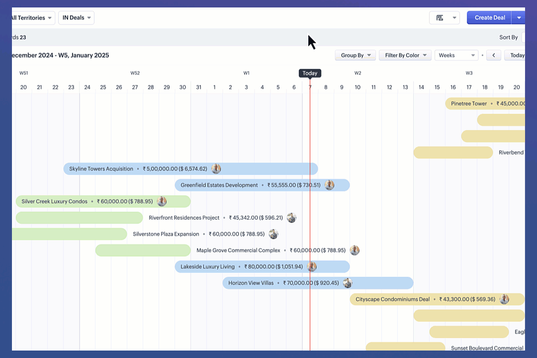- この直感的な色分けシステムは、各商談の包括的なスナップショットを提供し、オリヴィアは一目で商談全体のステータスを評価することができます。