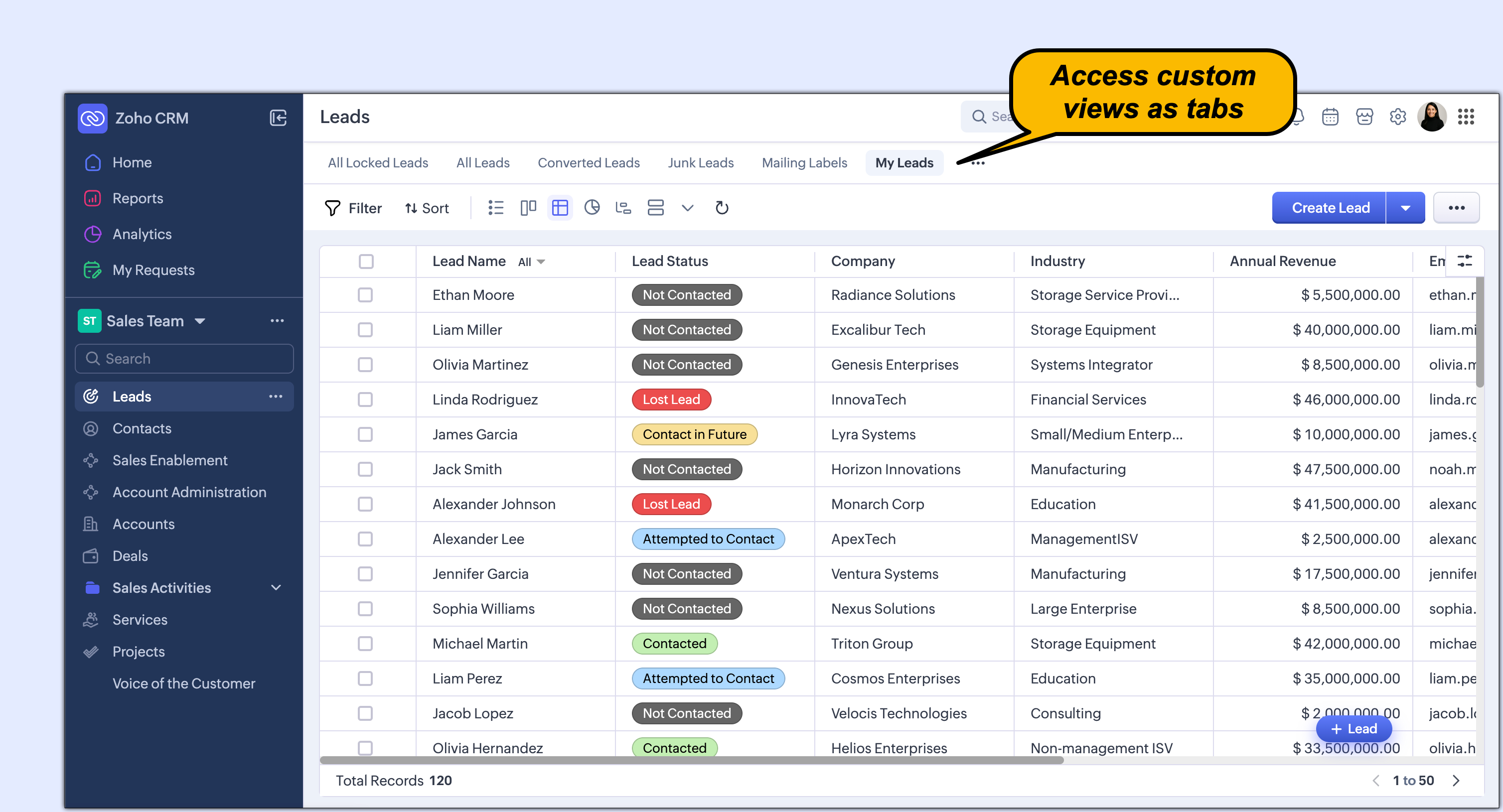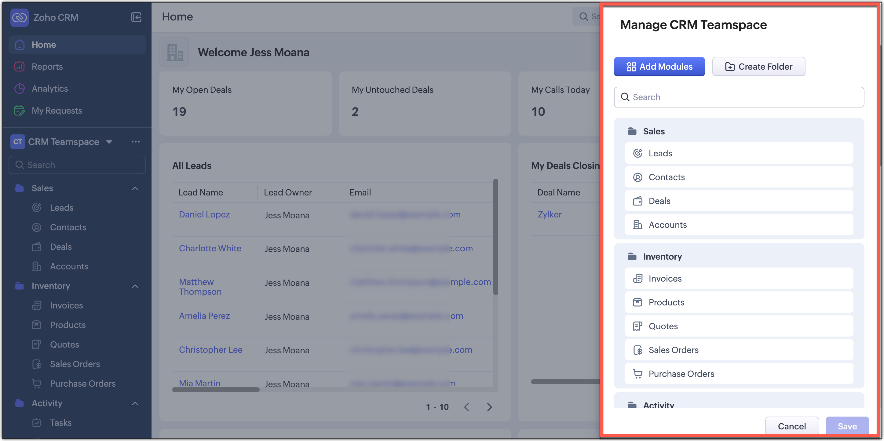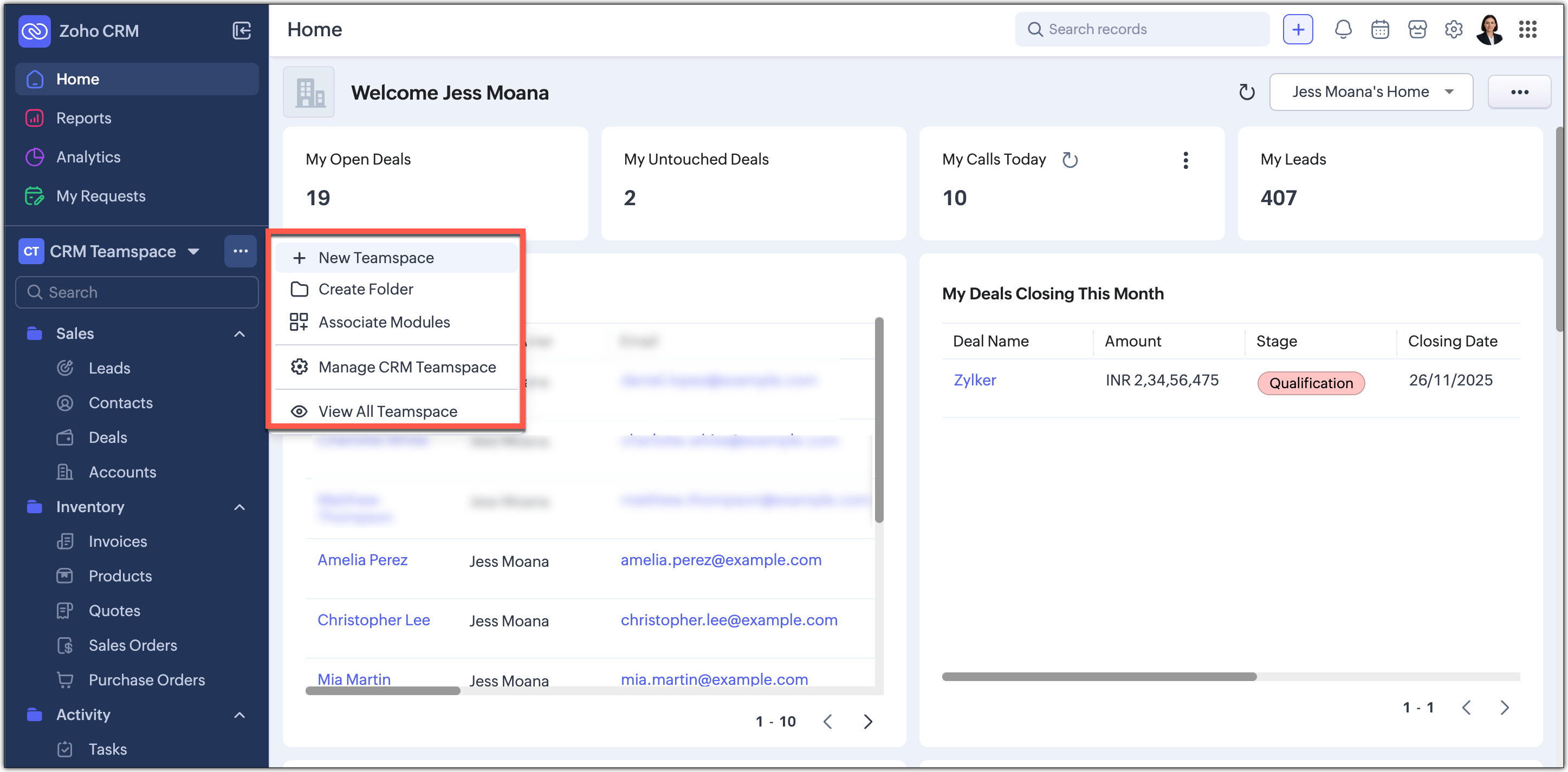 Zoho CRM for EveryoneのUIを改善しました。以下の変更は皆様からの貴重なフィードバックを反映したもので、使いやすさの向上、画面スペースの拡大、ナビゲーションの円滑化に重点を置き、必要な機能すべてにワンクリックでアクセスできるようになりました。