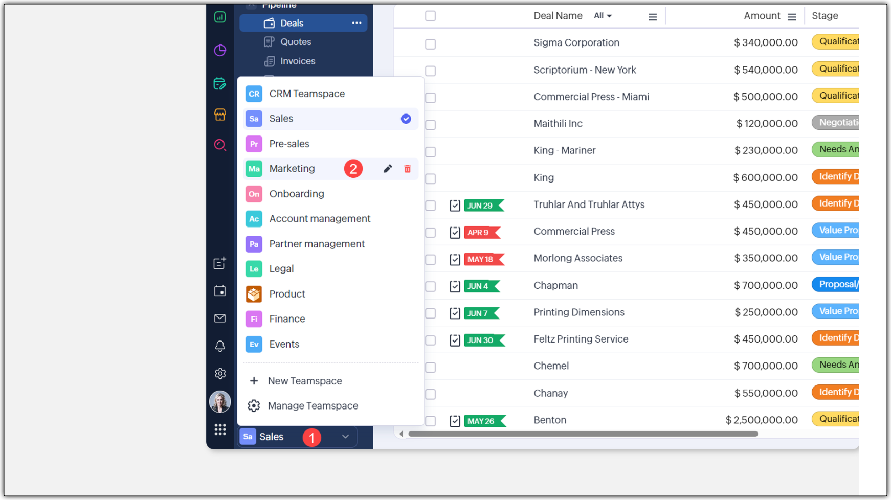 3. CRMチームスペースの管理は、画面の右端にポップアップとして表示されるようになります。