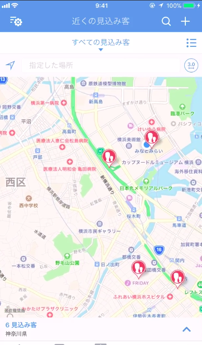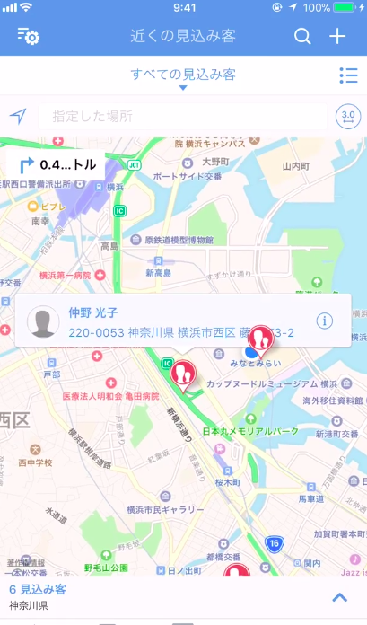 近辺の顧客情報を確認して、効率の良い営業活動や業務に繋げることができます。