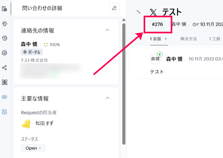 Ticket Idで指定する値は、下記赤枠の、「#」を除いた番号です。