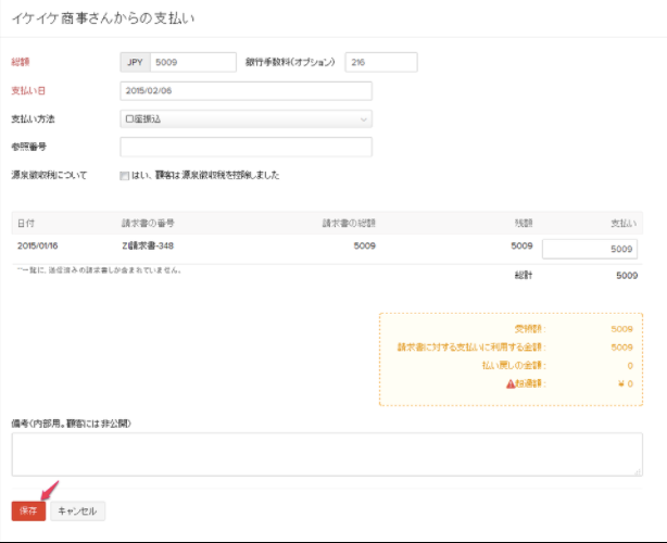 5)支払情報を編集し、「保存」をクリック