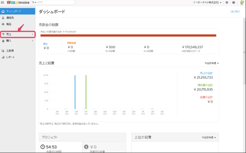 1)「売上」をクリック