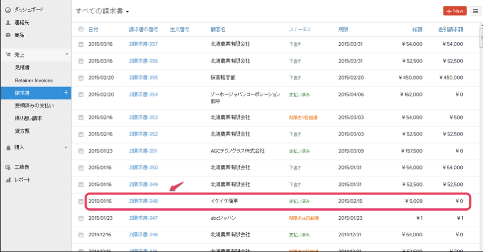 請求書の一覧が表示されます。