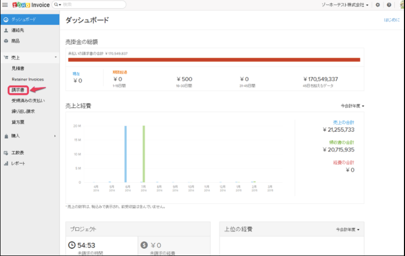 2)「請求書」をクリック