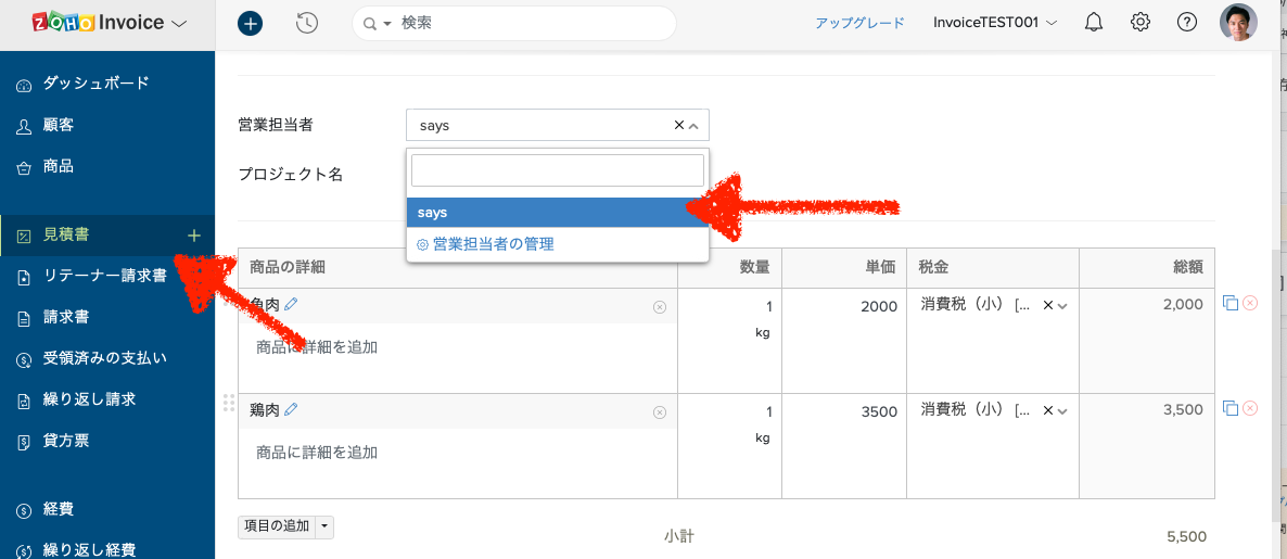 【Zoho Invoice】営業担当者の設定