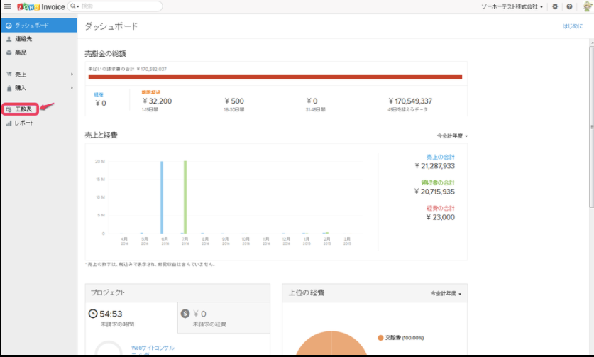 「工数表」をクリックします。