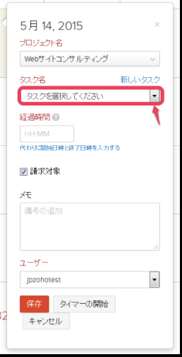 【Zoho Invoice】 カレンダーのタスク作成時にタイマー使用
