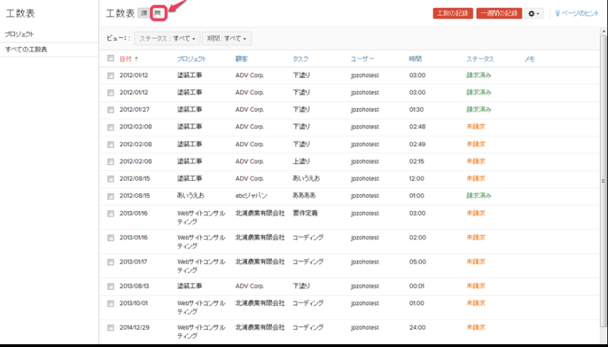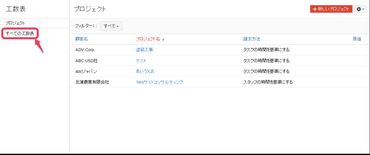 「すべての工数表」をクリックします。