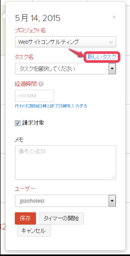 選択肢にない新しいタスクを追加する場合、「新しいタスク」リンクをクリックして空欄にタスク名を入力します。