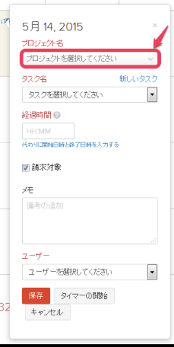 「プロジェクト名」のドロップダウンリストからプロジェクトを選択します。