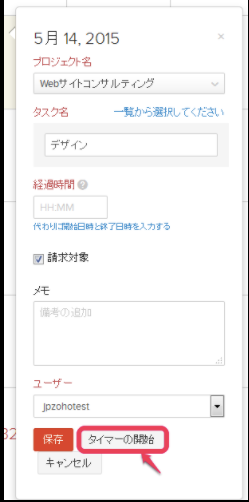 タスク開始時に「タイマーの開始」をクリックします。