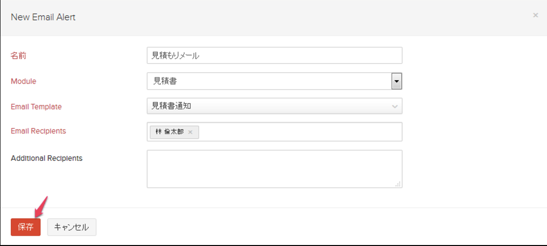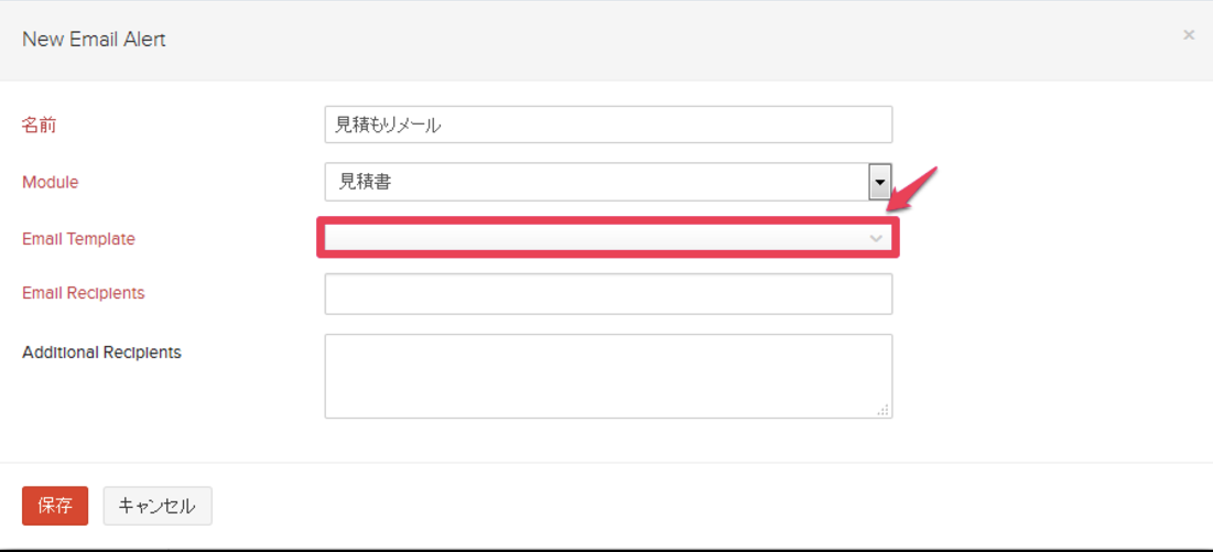 「Email Template」のドロップダウンリストからメール通知に使用するメールテンプレートを選択します。