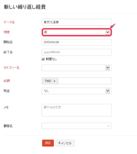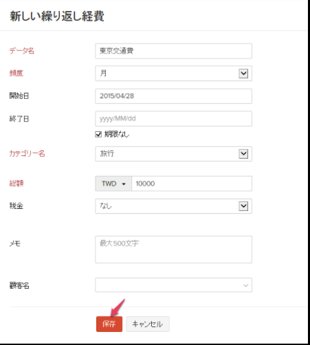 必要に応じて他の項目を入力し、「保存」をクリックします。