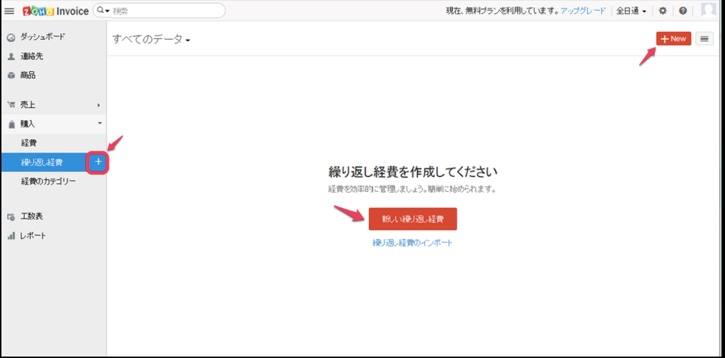 「新しい繰り返し経費」をクリックしても次のステップに進みますが、繰り返し経費を1件作成した後は、この表示はなくなります。